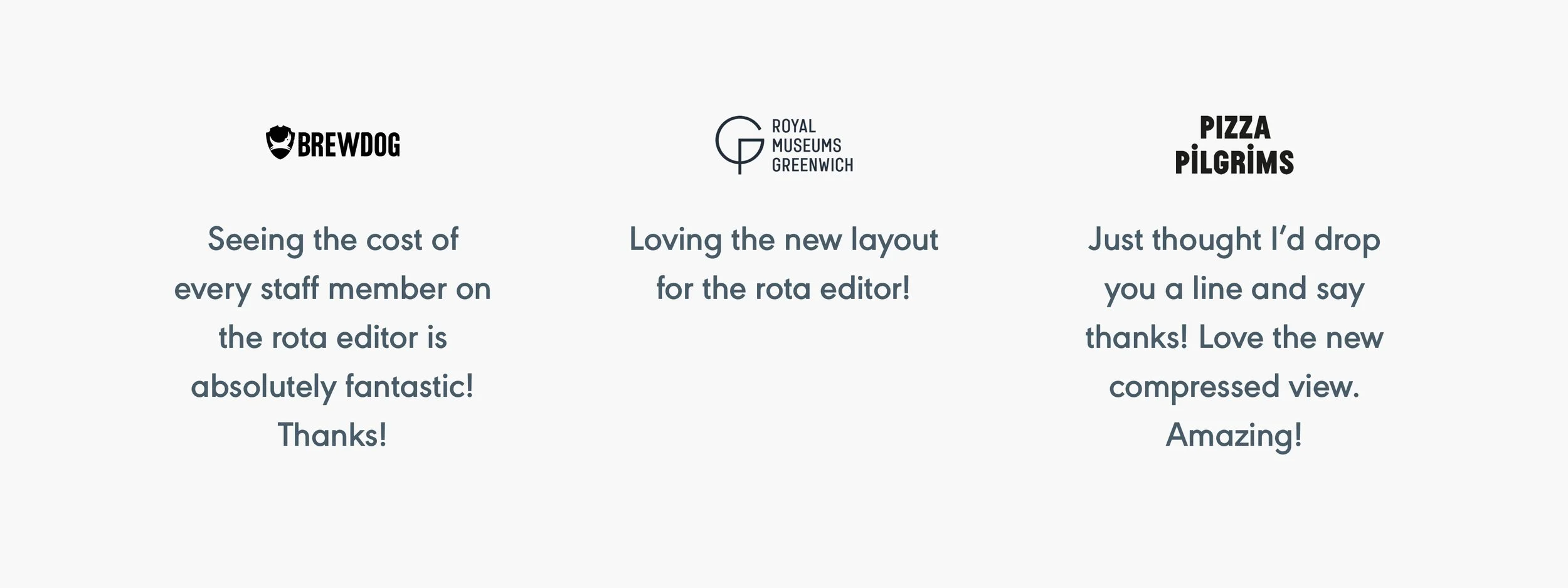 Feedback ranged from “I preferred the old style” and some valid points about seeing fewer rows of the rota than before, but this was resolved when they were shown compact mode. Interestingly, we found legacy users were the most frustrated by the change, recent customers welcomed the new rota.
