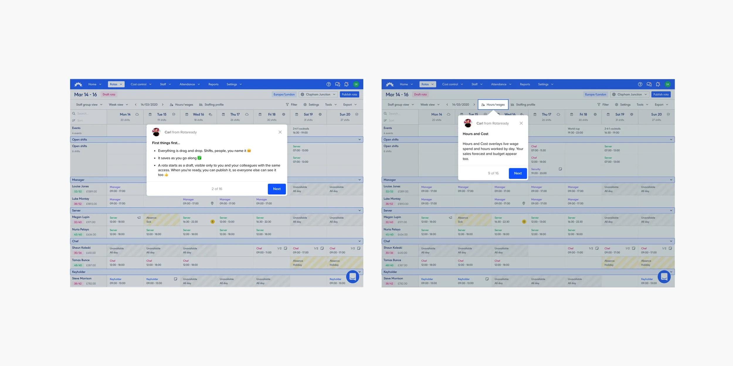 Since its initial build, the product team had grown. Rotaready had also become more driven by UX, along with the addition of Rotaready’s new brand, it became apparent that the tool needed a complete refresh rather than another round of iterations.